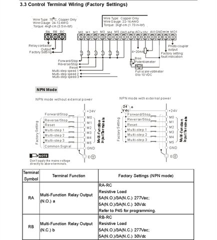 | 2: Multi-Function Inputs terminals 0 to 5 (7 steps. Jog, up/down) | |